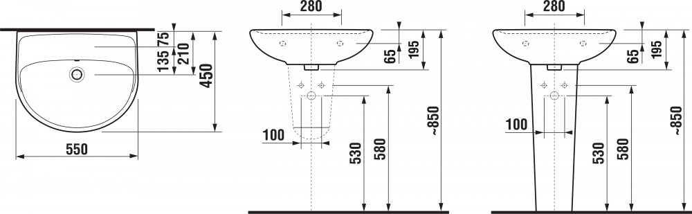 1) Раковина для ванной Jika Lyra Plus 55х45 см без отверстия белый