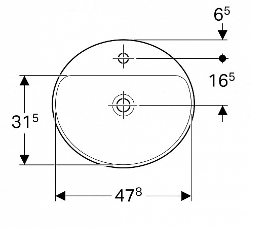 1) Раковина для ванной комнаты Geberit VariForm с полкой для отверстия под смеситель без перелива овальная белый