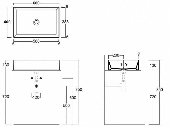 Раковина для ванной комнаты Simas Agile накладная 600х400 мм санфаянс белый