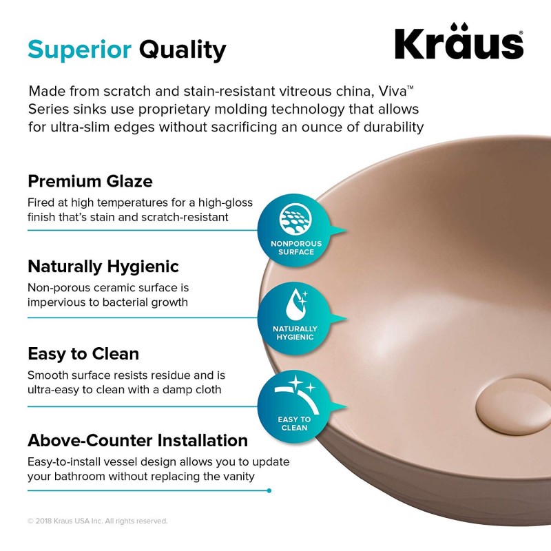 Раковина для ванной Kraus Viva Ø41,9 см керамика глянцевый бежевый KCV-200GBE