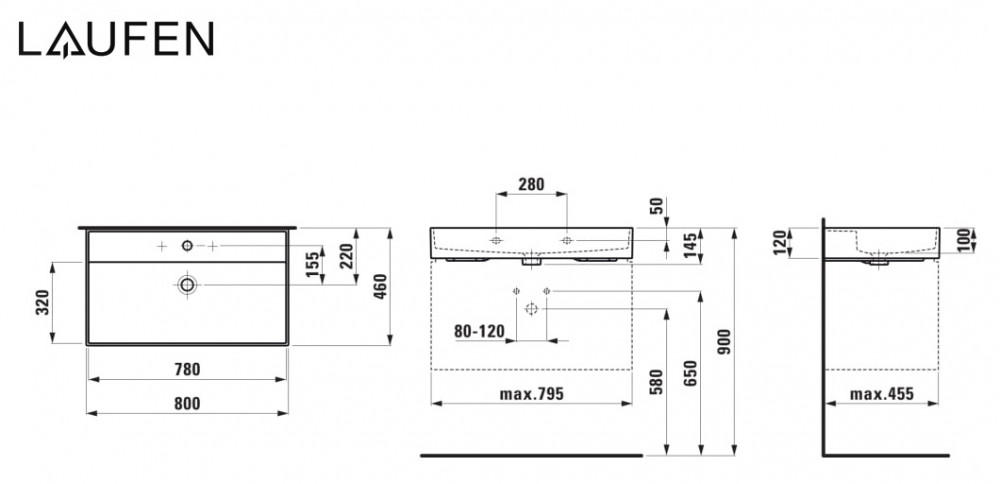 Раковина для ванной Laufen Kartell 80х46 см с 3 отверстиями под смеситель керамика белый