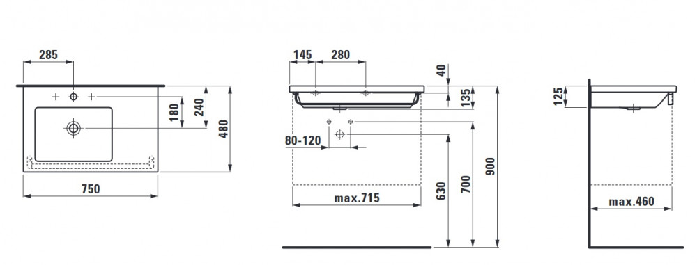 Раковина для ванной Laufen Living 75х48 см с 3 отверстиями полка справа керамика белый