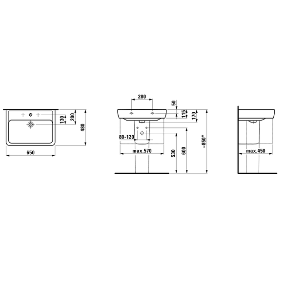 1) Раковина для ванной Laufen Pro А подвесная 65 см белый глянцевый