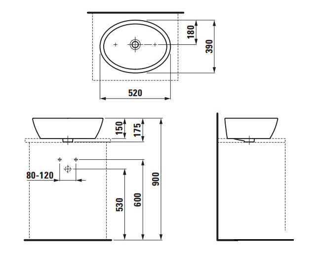 1) Раковина для ванной Laufen Pro B 52х39 см накладная белый с покрытием LCC