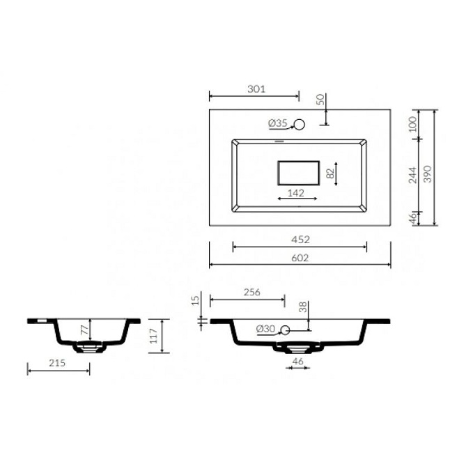 Раковина для ванной Marmorin Lira 600 врезная литой камень белый 640 060 020 xx x