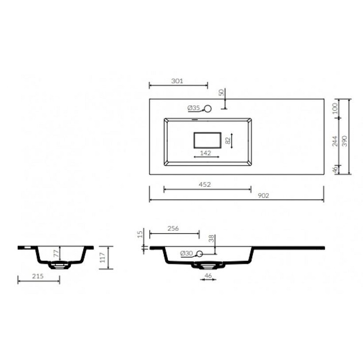 Раковина для ванной Marmorin Lira 900 R врезная правая литой камень белый 640 090 920 xx x