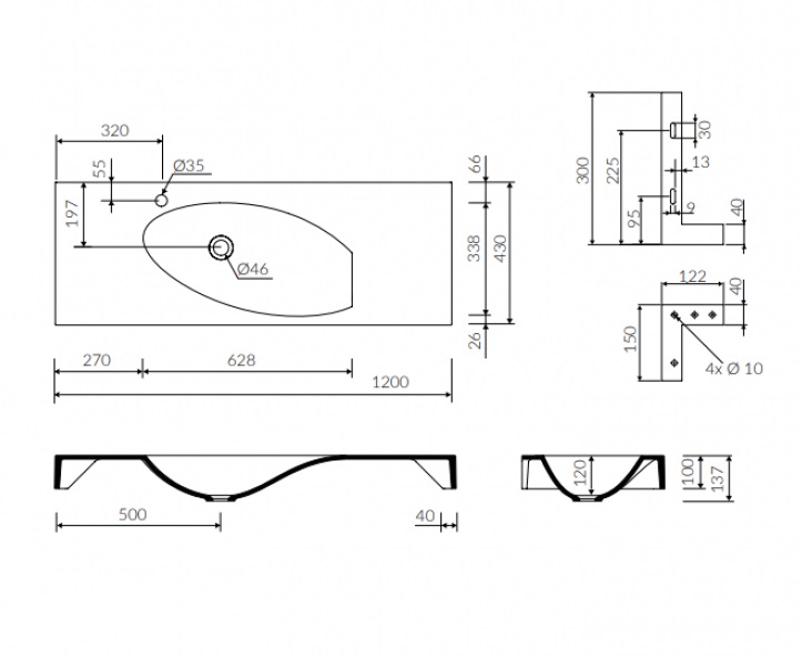 1) Раковина для ванной Marmorin Ugo 120х43 см литой камень белый