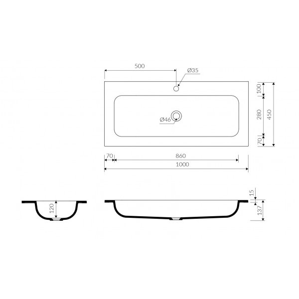 Раковина для ванной Marmorin Mono 1000 врезная без крыла литой камень белый P_U_595_03_1000