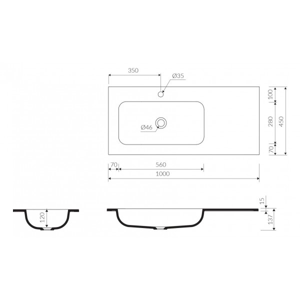 Раковина для ванной Marmorin Mono 1000 R врезная с крылом слева литой камень белый P_U_595_07_1000