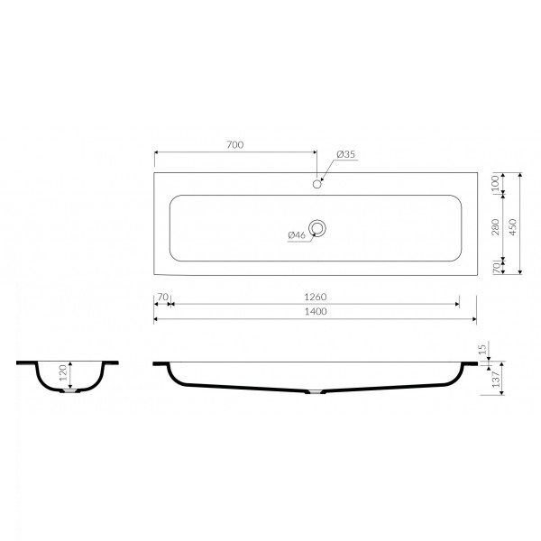 Раковина для ванной Marmorin Mono 1400 врезная без крыла литой камень белый P_U_595_05_1400