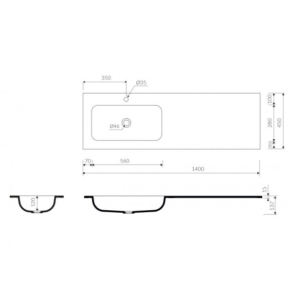Раковина для ванной Marmorin Mono 1400 L врезная с крылом справа литой камень белый P_U_595_10_1400