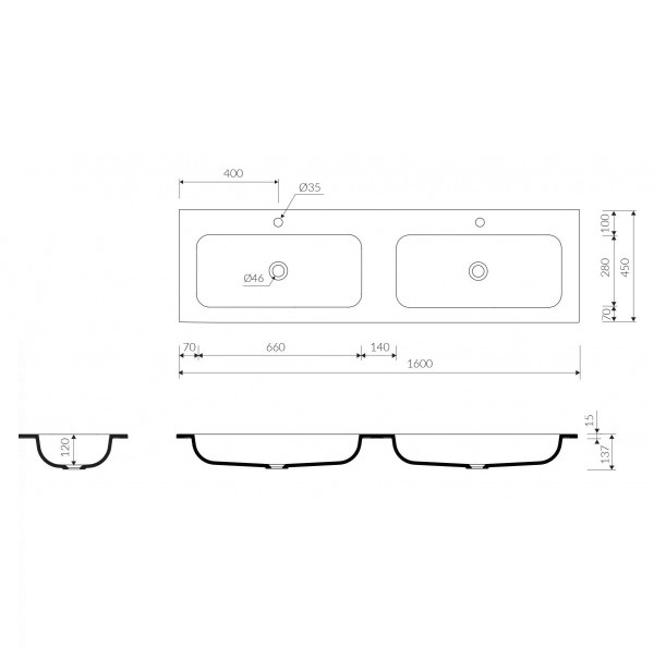 Раковина для ванной Marmorin Mono 1600 Duet врезная без крыла литой камень белый P_U_595_12_1600