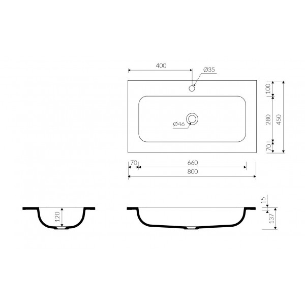 Раковина для ванной Marmorin Mono 800 врезная без крыла литой камень белый P_U_595_02_0800