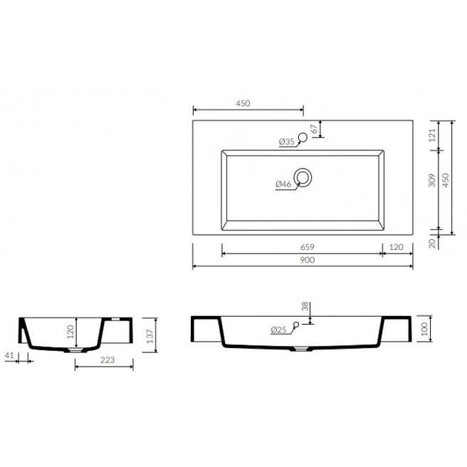 Раковина для ванной Marmorin Teo 900 накладная без крыла литой камень белый 641 090 020 xx x