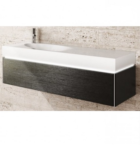 1) Раковина для ванной Marmorin Ugo 165х43 см левосторонняя литой камень белый