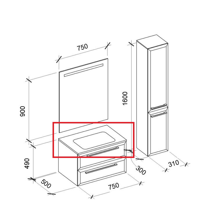 1) Раковина для ванной Marsan Квадро 750 врезная стекло