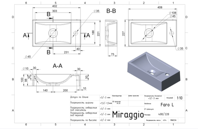 - Смотреть другие: Раковины для ванной комнаты Miraggio