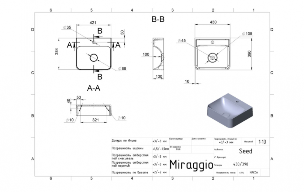 - Смотреть другие: Раковины для ванной комнаты Miraggio