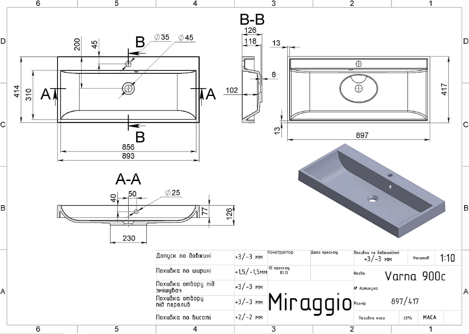 MIRAGGIO – украинский бренд, более 10 лет специализирующийся на изготовлении сантехники из литого мрамора. Компания имеет собственное производство в г. Днепр. Для производства сантехники мы используем оборудование, разработанное нашими инженерами. У приборов и форм MIRAGGIO нет аналогов в мире. Важно, что у каждой формы дубликат, что гарантирует непрерывный процесс производства умывальников и ванн.