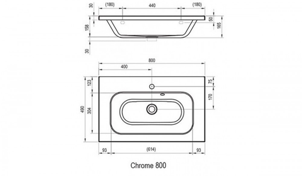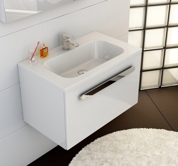 1) Раковина для ванной на тумбу Ravak Chrome 800 со скрытым переливом с одним отверстием для смесителя белая