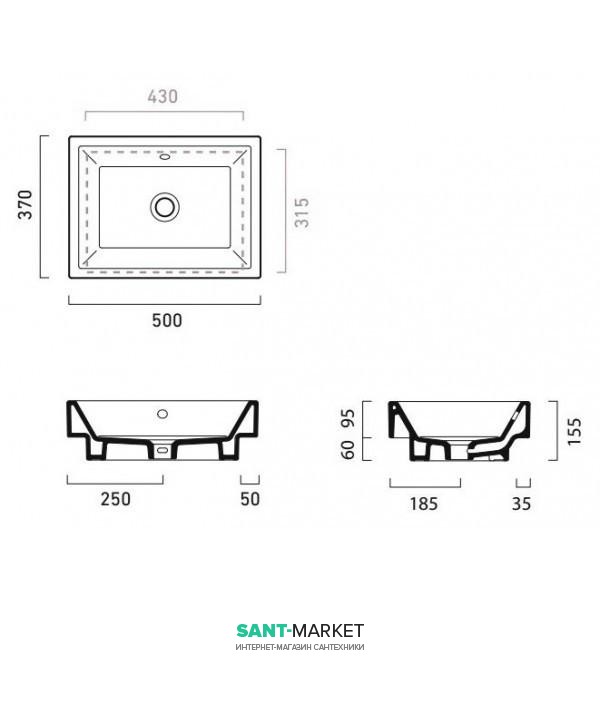 Раковина для ванной накладная Catalano VERSO 37x37 см без отв. под смеситель белая 15037VEN00