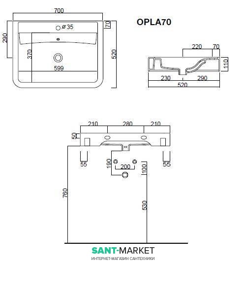 Раковина для ванной накладная Cielo OPERA 70x52 см 1 отв. под смеситель белая OPLA70