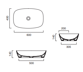 1) Раковина для ванной накладная Catalano Green Lux 60х40 керамика цвет черный/золото