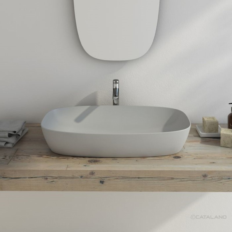 Раковина для ванной накладная Catalano Green Lux 80х40 овальная керамическая цвет цементный матовый