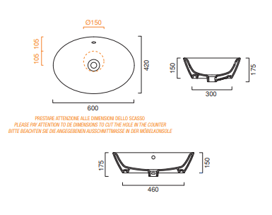 Раковина 60х42 в отделке "Золото на белом". Покрытие имеет высокую стойкость к абразивам, что в сочетании с Cataglaze позволяет сохранить яркость и блеск изделия на протяжении долгого времени. Раковина для установки на поверхности со сливом/переливом для настенных или настольных кранов.