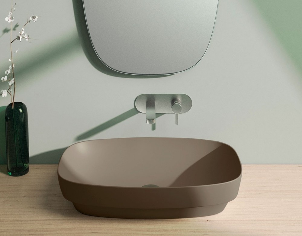 1) Раковина для ванной накладная Catalano Colori 60х38 керамика цвет коричневый поверхность сатин