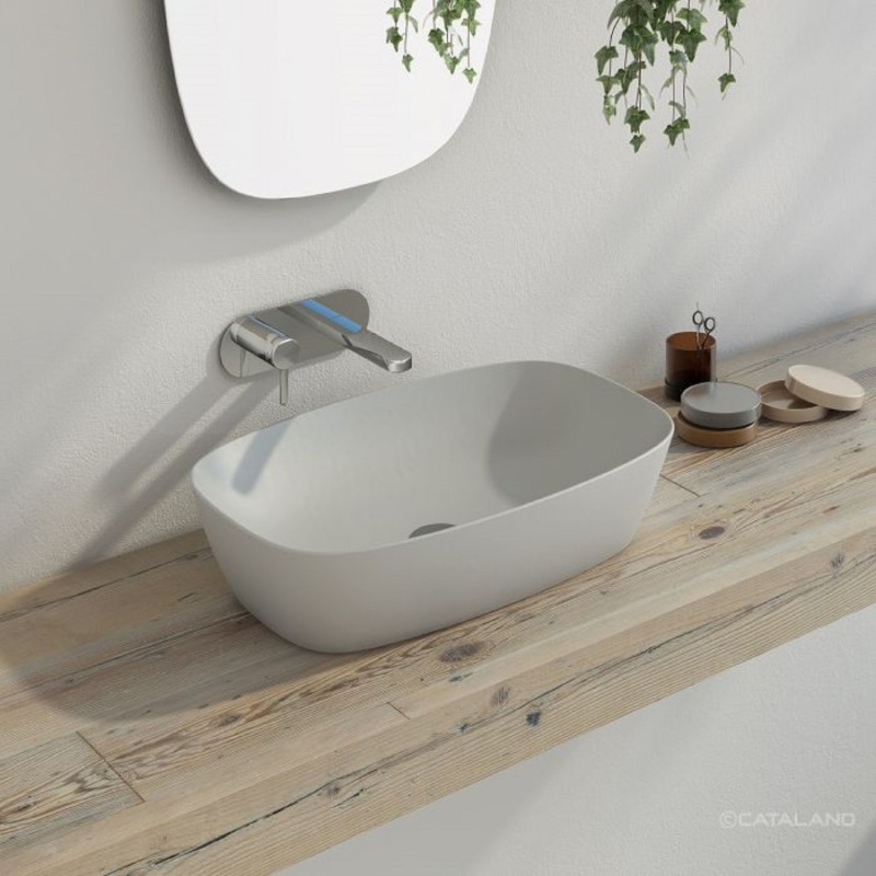 Раковина для ванной накладная Catalano Colori Green Lux 60х40 овальная керамическая цвет цемент матовый 160APGRLXCS