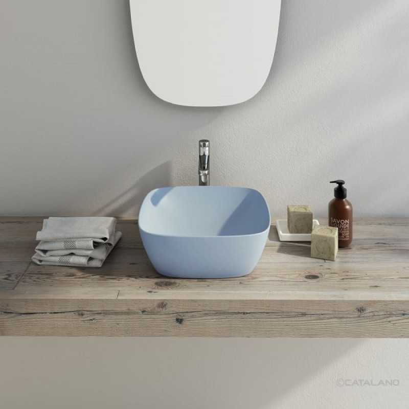Раковина для ванной накладная Catalano Colori Green Lux 40х40 квадратная керамическая цвет голубой матовый