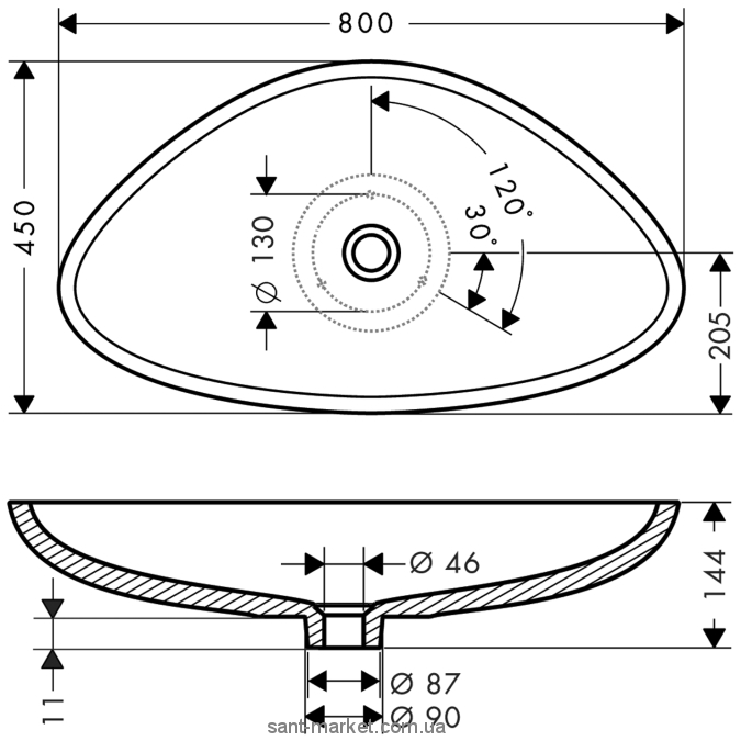 Раковина накладная Hansgrohe Axor Massaud 42300000 обладает большими размерами, треугольной формой и современным дизайном. Чаша устанавливается на поверхности, благодаря белому цвету, гармонично сочетается со всеми цветными столешницами. Есть отверстие под сифон. Раковина выполнена из минерального литья с гелькоутом. Она легко чистится, прочная.