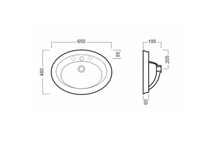 1) Раковина для ванной Hatria DOLCEVITA 65х48 см белая глянцевая