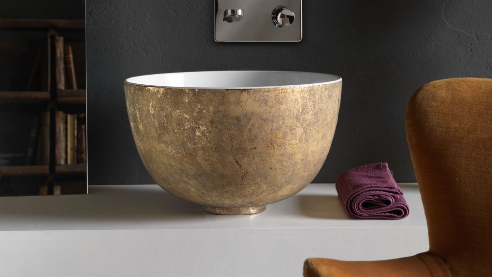 1) Раковина для ванной накладная Kerasan Ciotola C1 ø46 см санфарфор декор 2 (платиновый матовый)