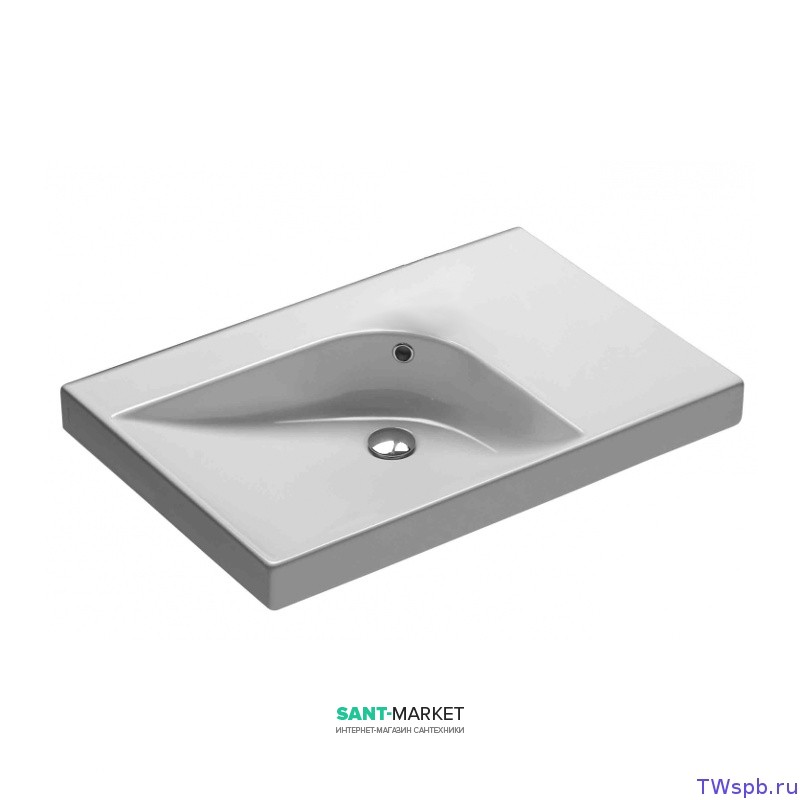 1) Раковина для ванной накладная левая Hatria Grandangolo 75х50 см белая
