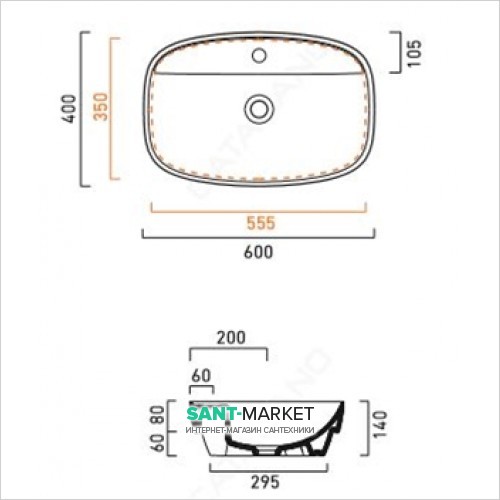 Раковина для ванной настольная или полувстраиваемая Catalano Green LUX 60х40 см 1 отв. под смеситель белая 160GRLX00