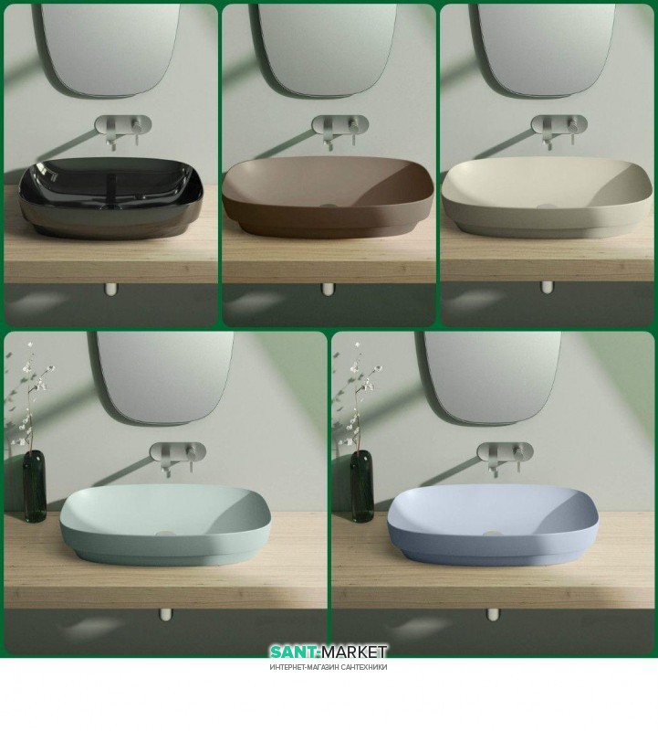Раковина для ванной настольная или полувстраиваемая Catalano Green LUX 60х38 см без отв. под смеситель голубая матовая 160AGRLXAS