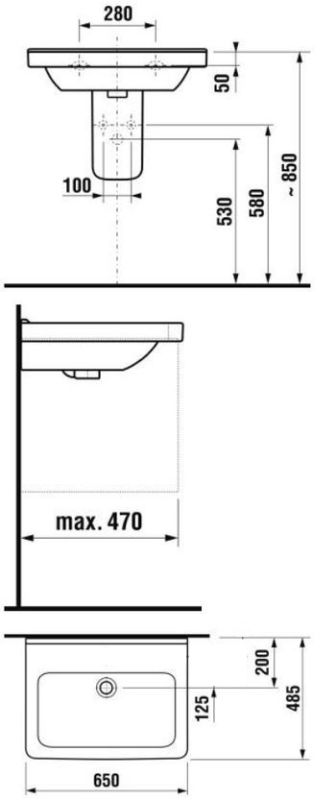 1) Раковина для ванной подвесая Jika Cubito 65 см керамика белый