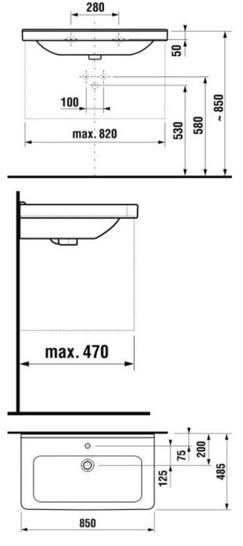 1) Раковина для ванной подвесая Jika Cubito 85 см керамика белый