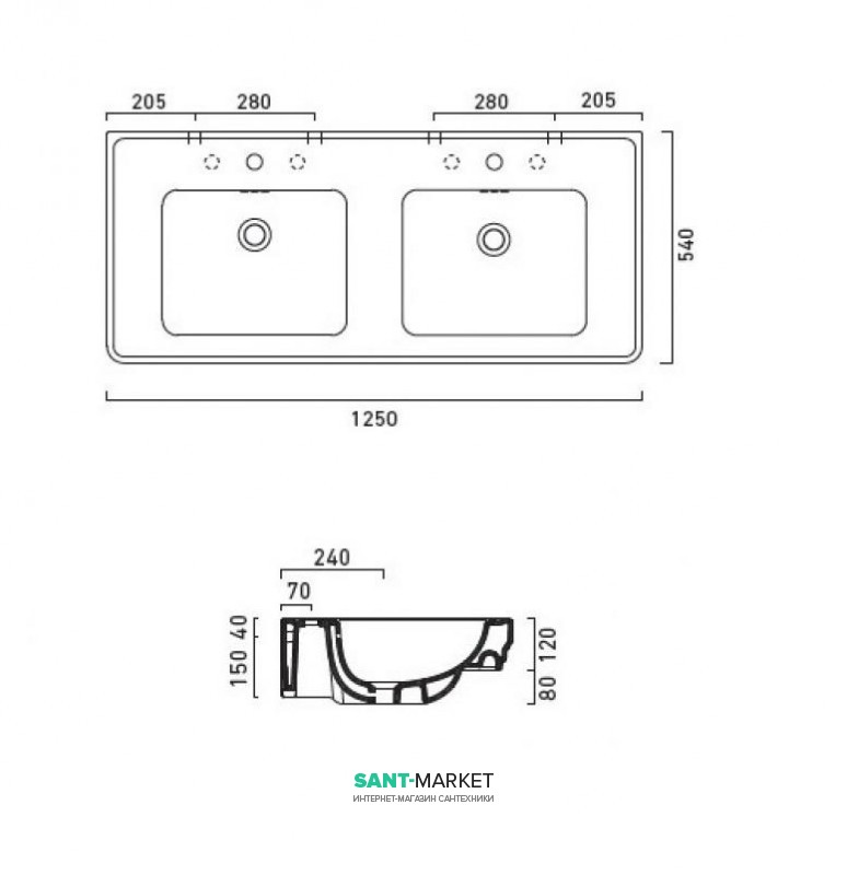 2 отв. под смеситель