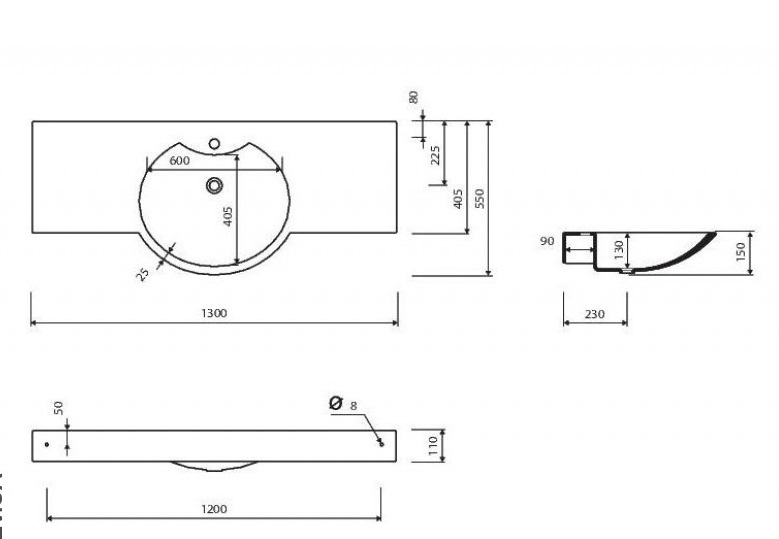 - Форма раковины: прямоугольная