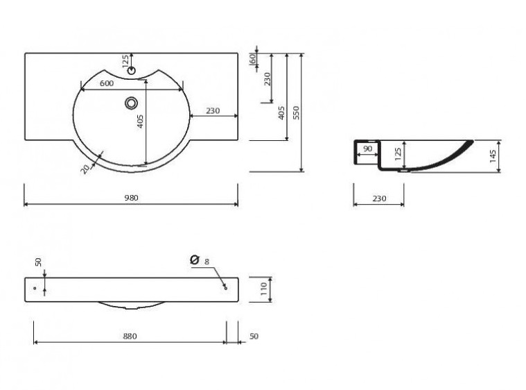 - Форма раковины: прямоугольная