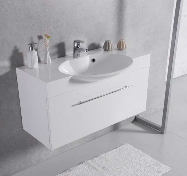 1) Раковина для ванной Marmorin Carme 98х55 см литой камень белый