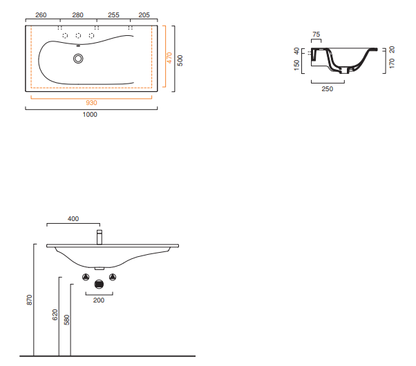 1) Раковина для ванной подвесная Catalano Impronta 100х50 керамика цвет белый