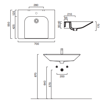 1) Раковина для ванной подвесная Catalano Sfera Comfort 70х55 керамика цвет белый