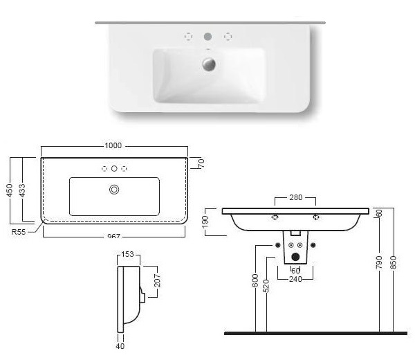 - Размеры - 1000 х 450 мм