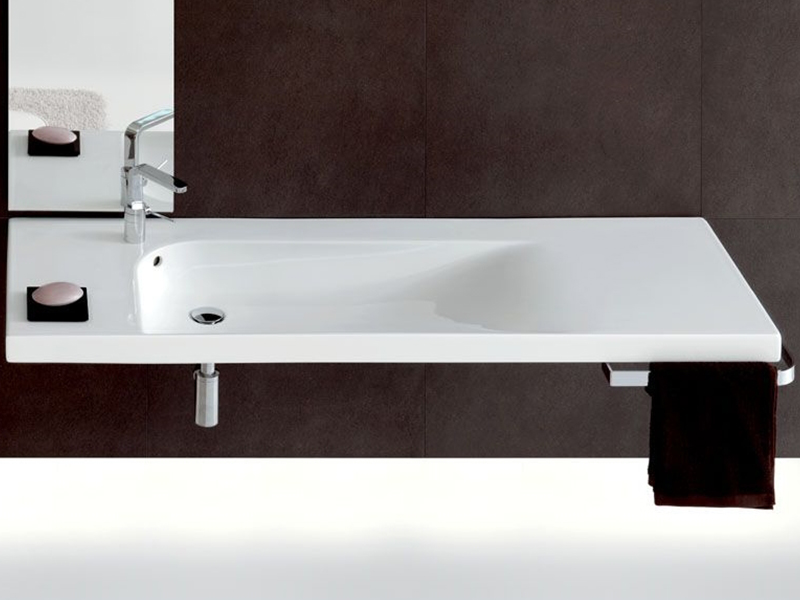 1) Раковина для ванной подвесная Hatria Grandangolo 150х50 см с одним отверстием под смеситель белый