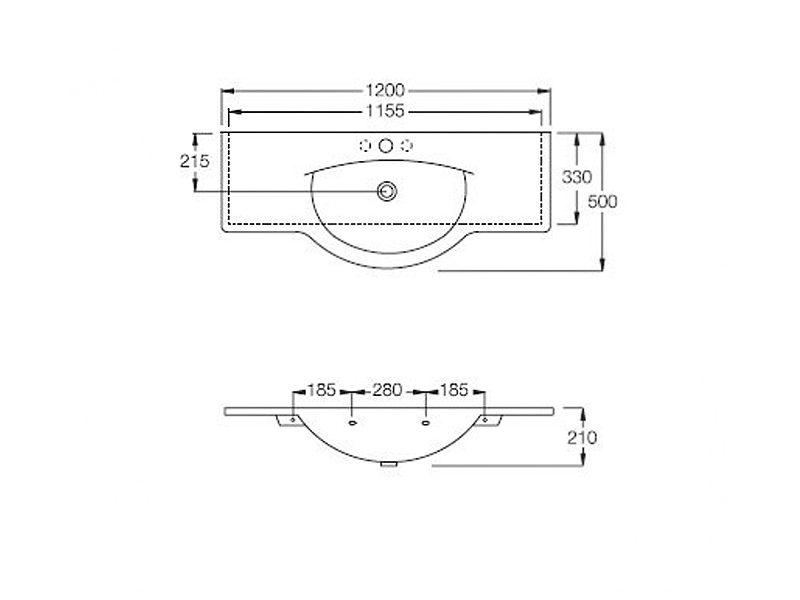 Раковина подвесная или накладная HATRIA SOPHIE Y0HE01, размер 120х50 см, цвет белый. Раковина поставляется под смеситель на одно, по запросу на три отверстия, может дополняться хромированным полотенцедержателем и подвесной консолью с полкой.