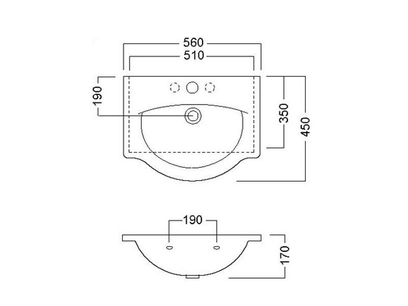 - с двумя намеченными отверстиями под смеситель